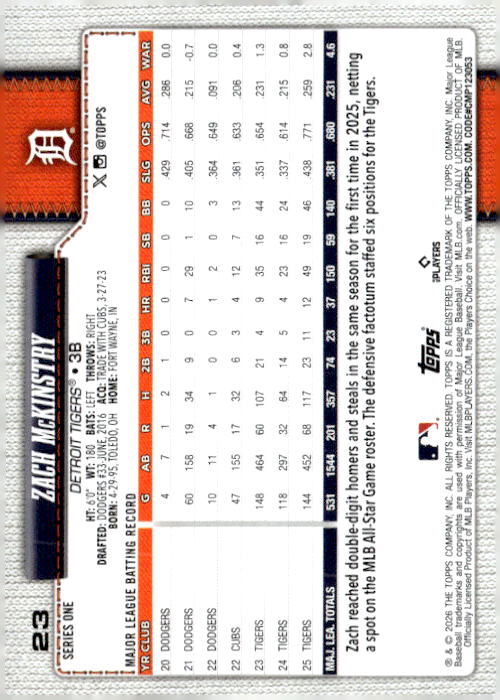Zach McKinstry • Detroit Tigers • 2026 • Topps • Card #23