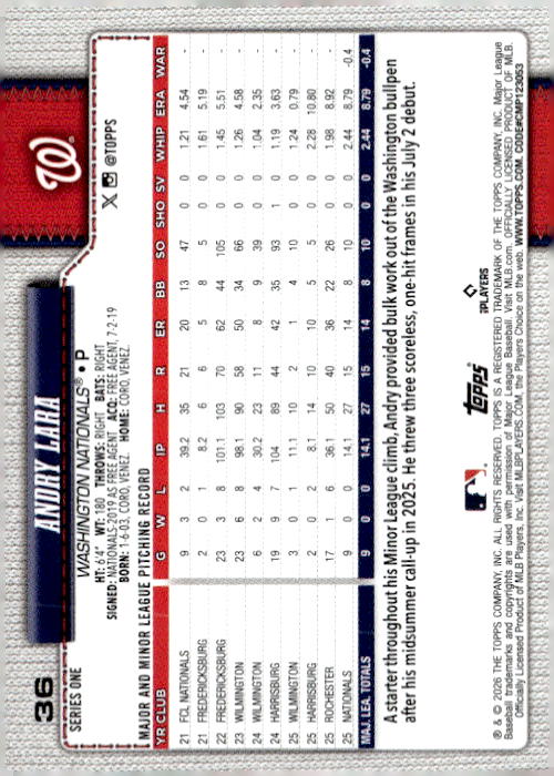 Andry Lara • Washington Nationals • 2026 • Topps • Card #36