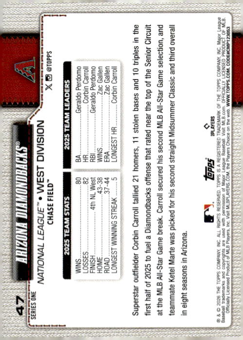 Arizona Diamondbacks • Arizona Diamondbacks • 2026 • Topps • Card #47