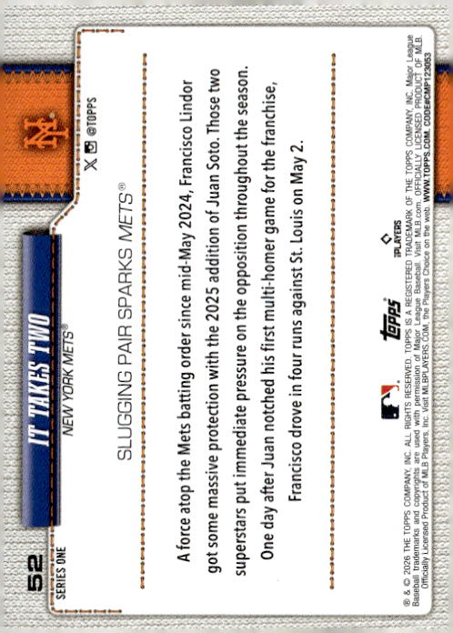 It Takes Two • New York Mets • 2026 • Topps • Card #52