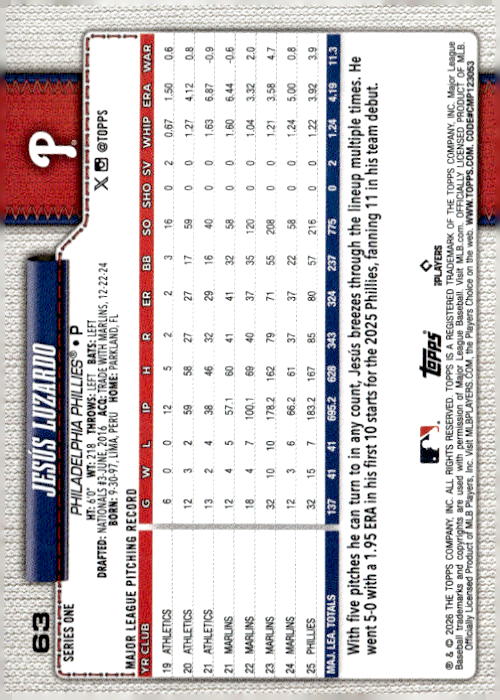 Jesús Luzardo • Philadelphia Phillies • 2026 • Topps • Card #63