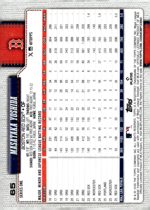 Masataka Yoshida • Boston Red Sox • 2026 • Topps • Card #65