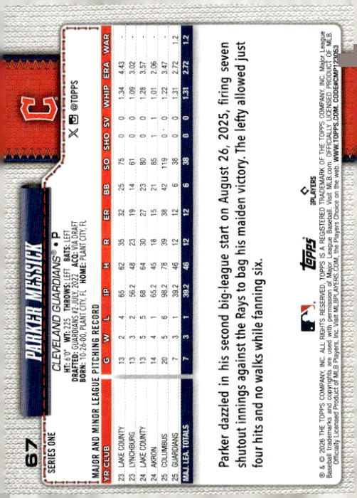 Parker Messick • Cleveland Guardians • 2026 • Topps • Card #67