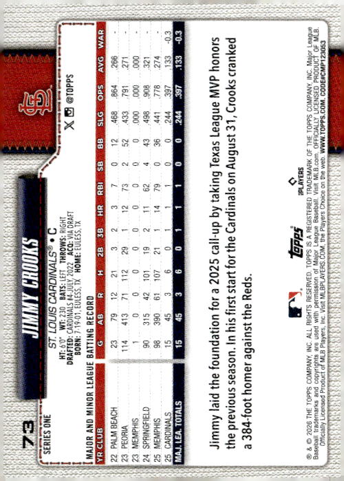 Jimmy Crooks • St. Louis Cardinals • 2026 • Topps • Card #73