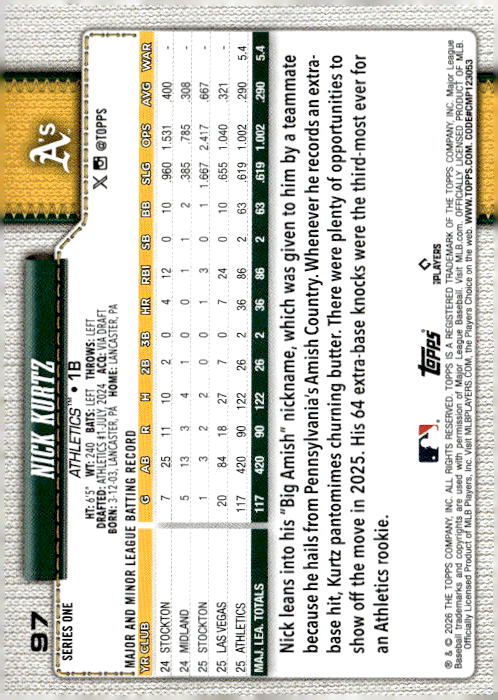 Nick Kurtz • Athletics • 2026 • Topps • Card #97